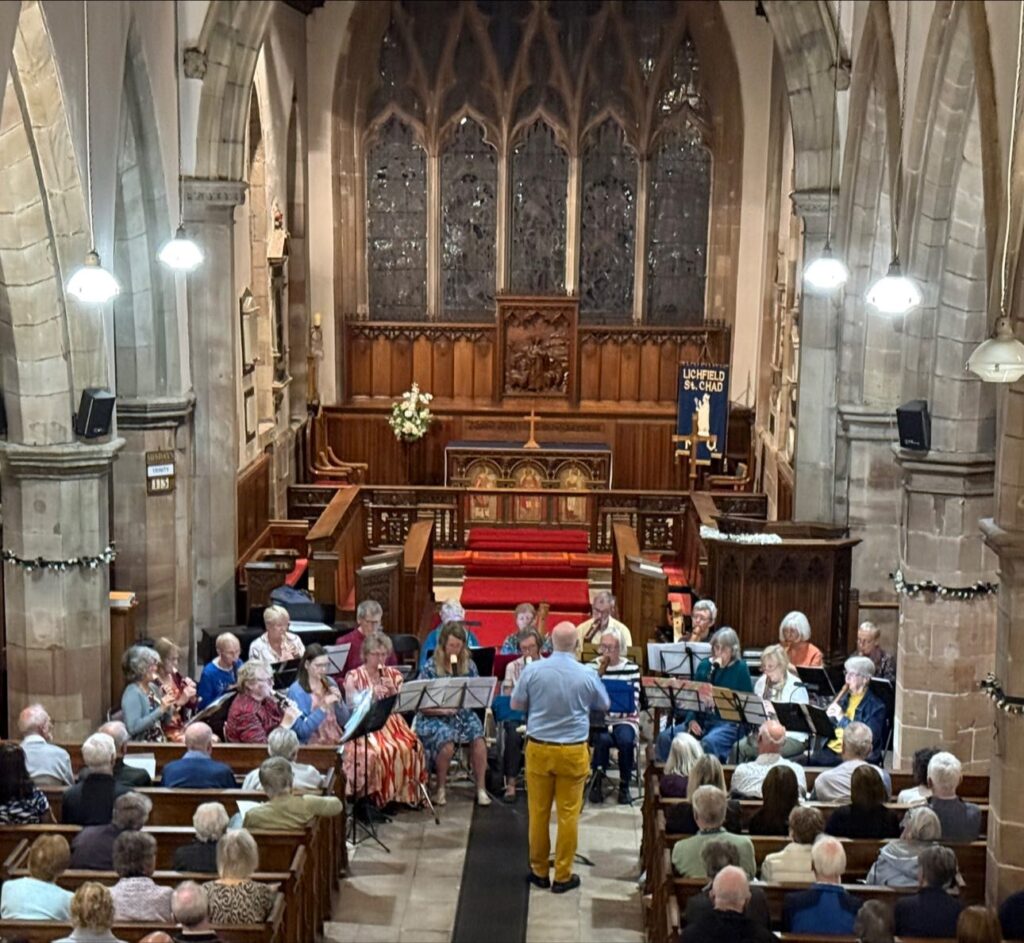 We play music from all genres, early to modern, and occasionally perform in local venues to raise money for charity. Last year we joined with the u3a orchestra to raise money for St Giles hospice in the early Autumn (see attached photo) and for St Chad's church at Christmas. We also regularly brave the elements just before Christmas to play in Lichfield precinct, taking our turn with other u3a music groups to raise money, again for St Giles.