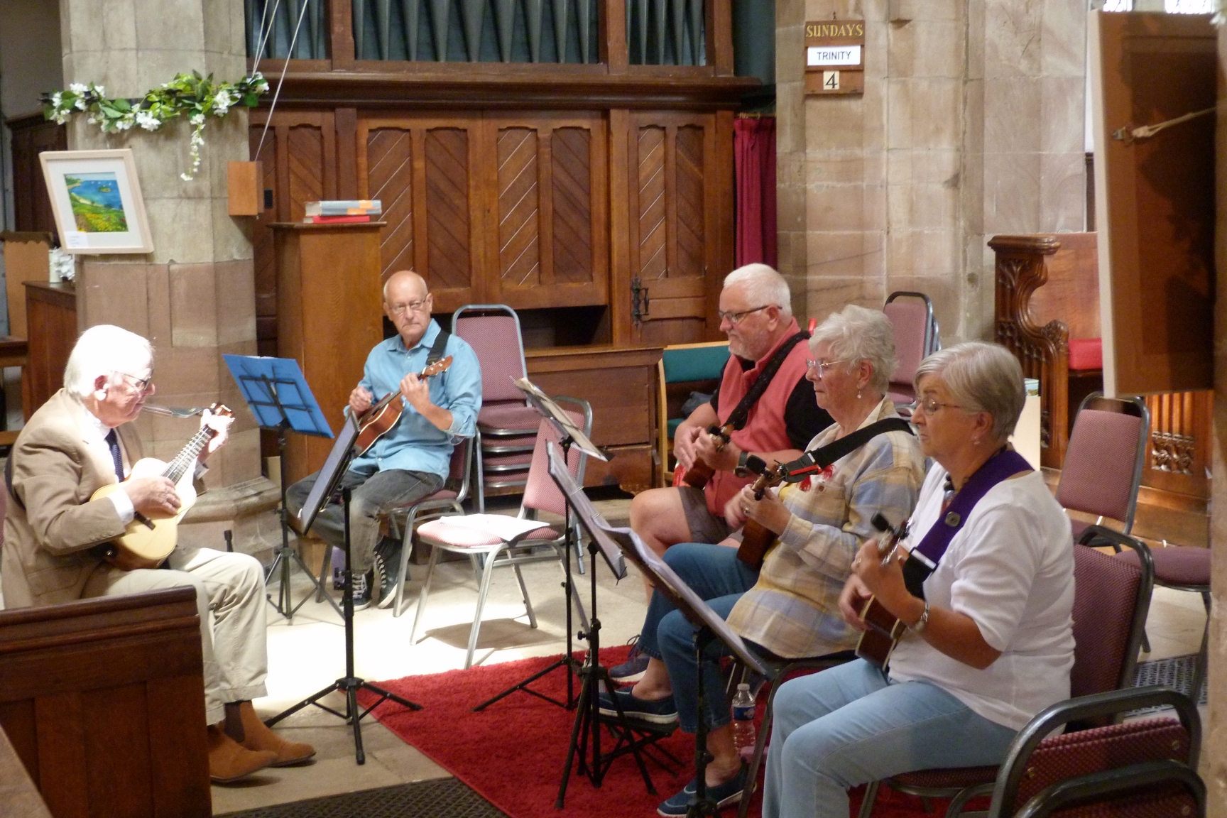We are a group of enthusiastic ukulele players who work as a group, learning from one another and entertaining ourselves and occasionally others. We are a small Group and would welcome any new players.